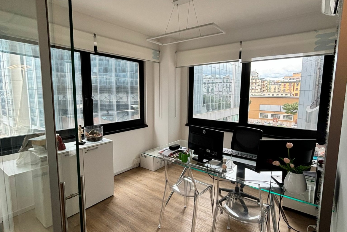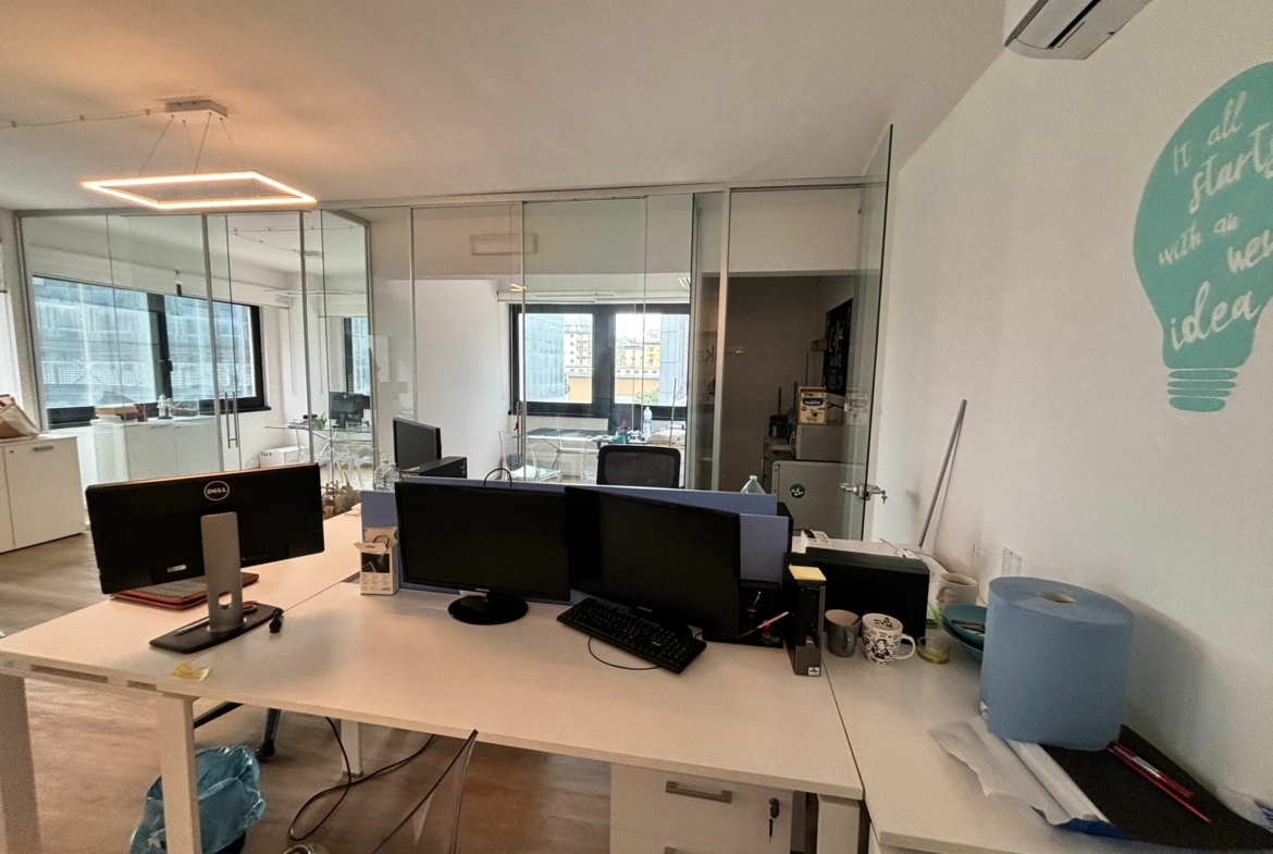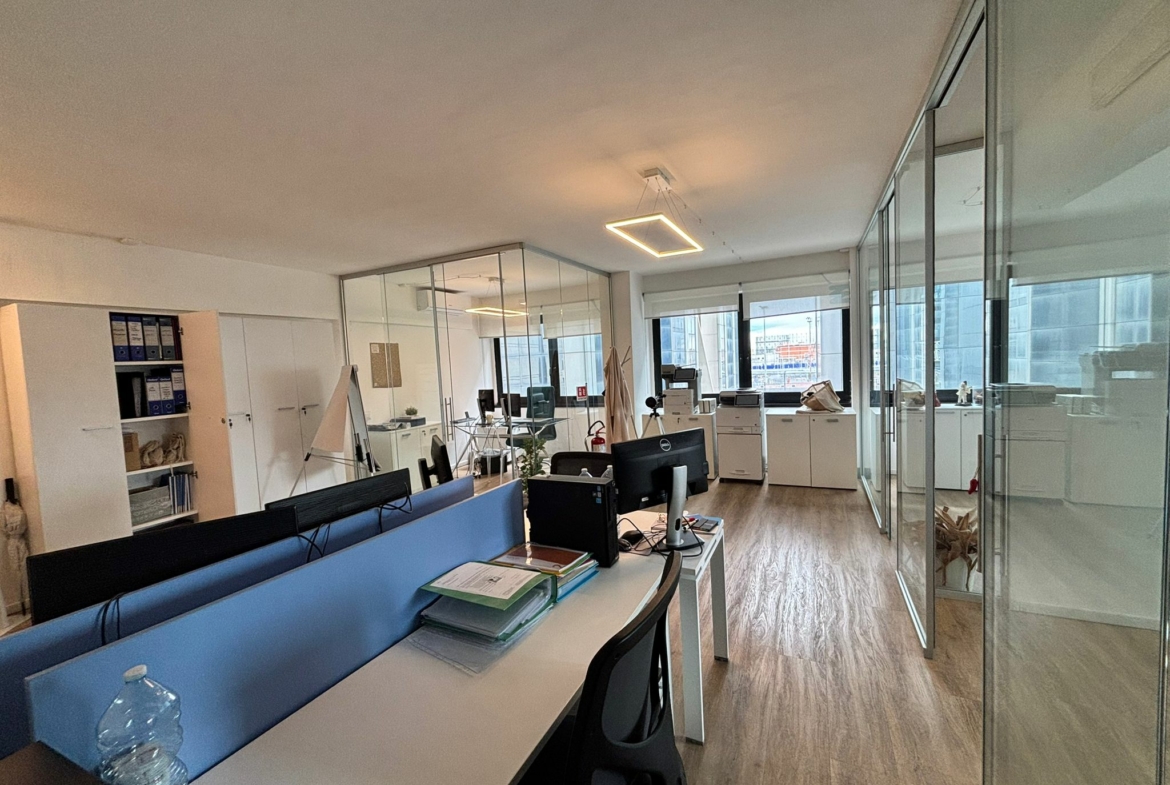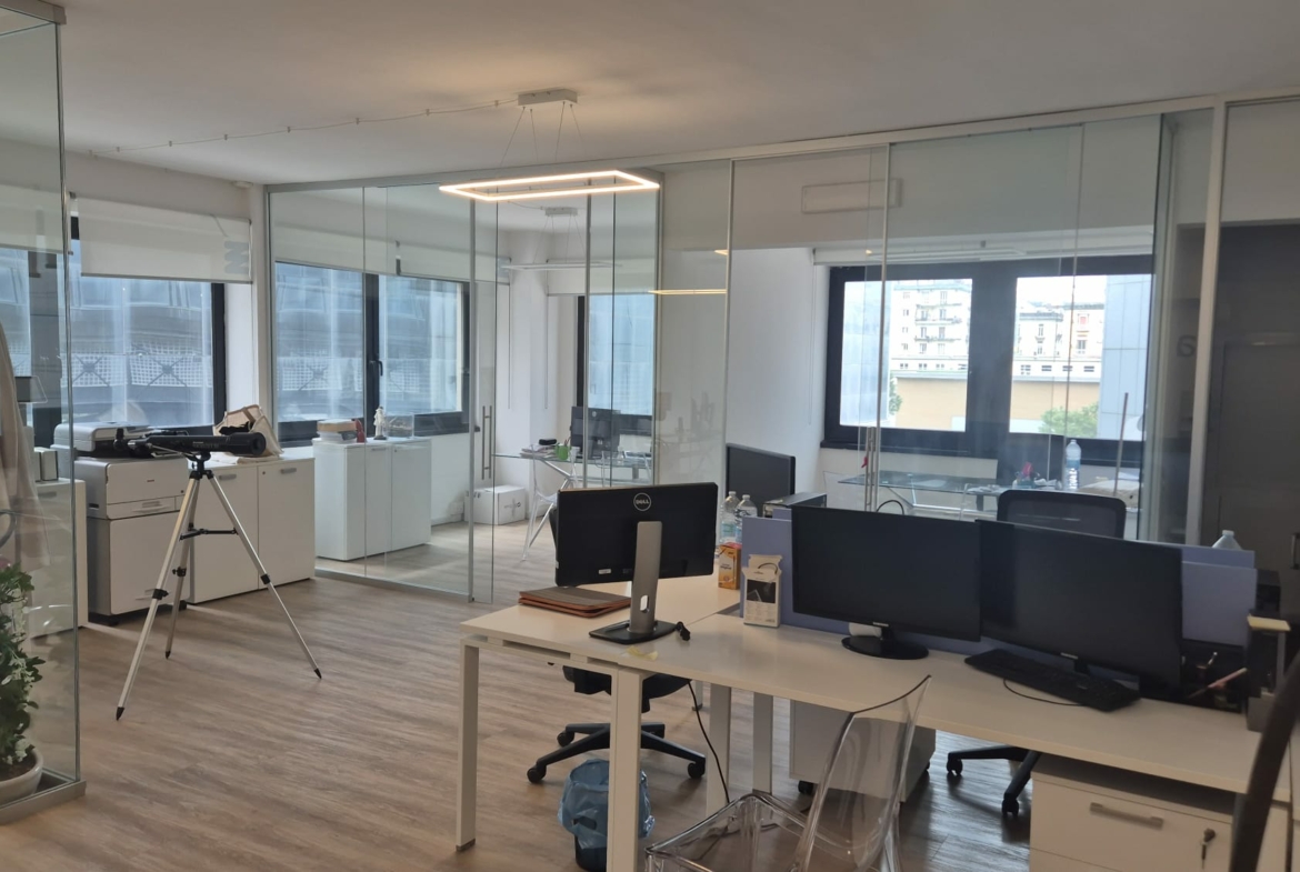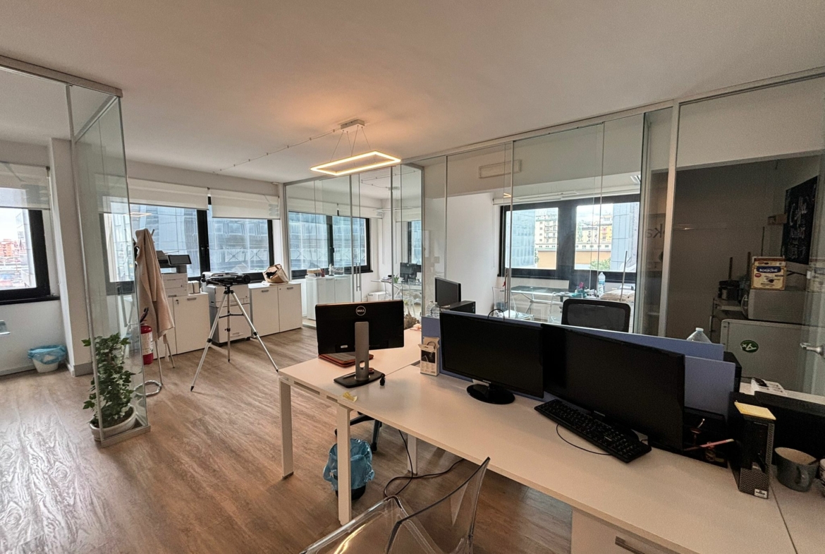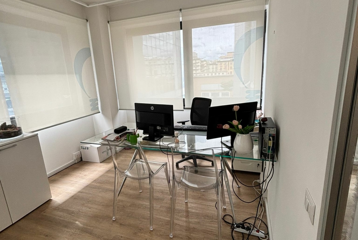 L’ufficio, in ottime condizioni, posto al 2° piano, dispone di ingresso, 1 vano open space, 3 vani, ripostiglio e wc.