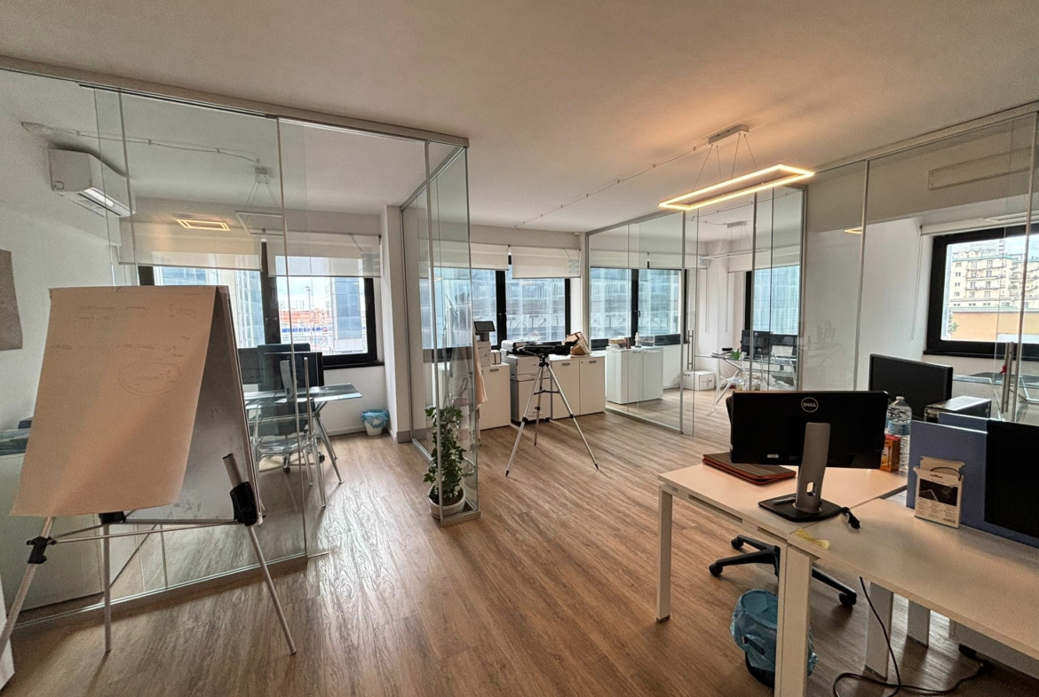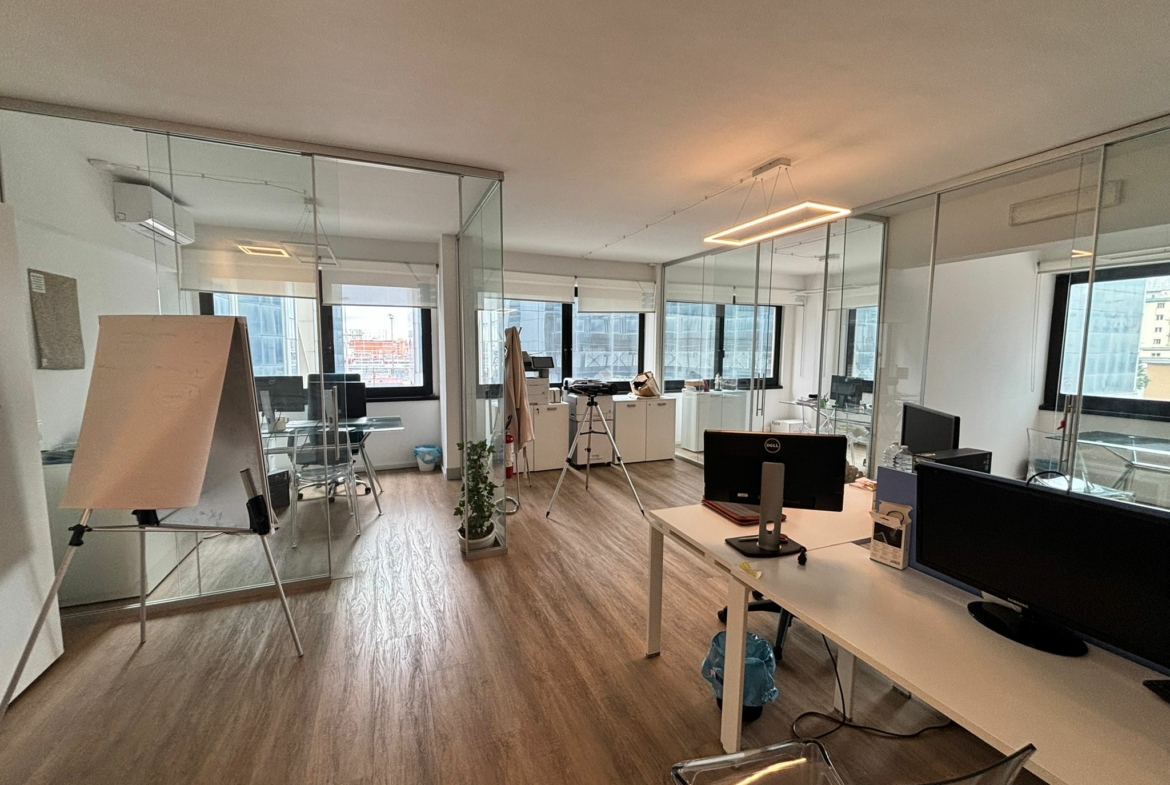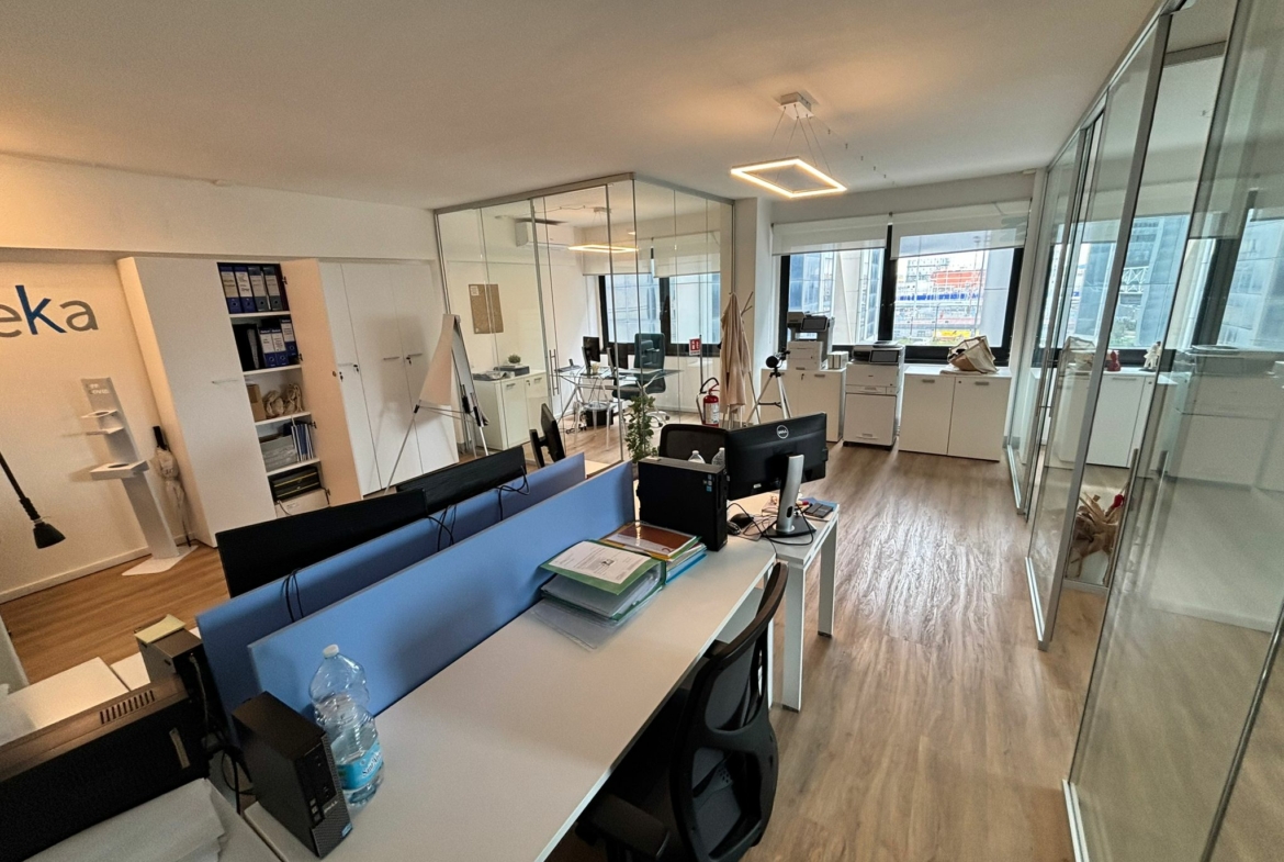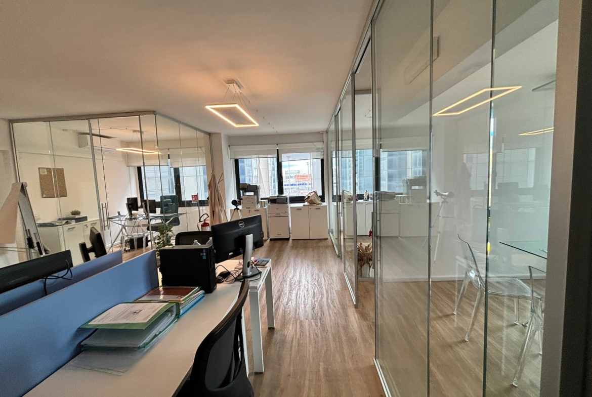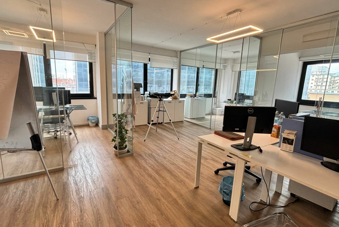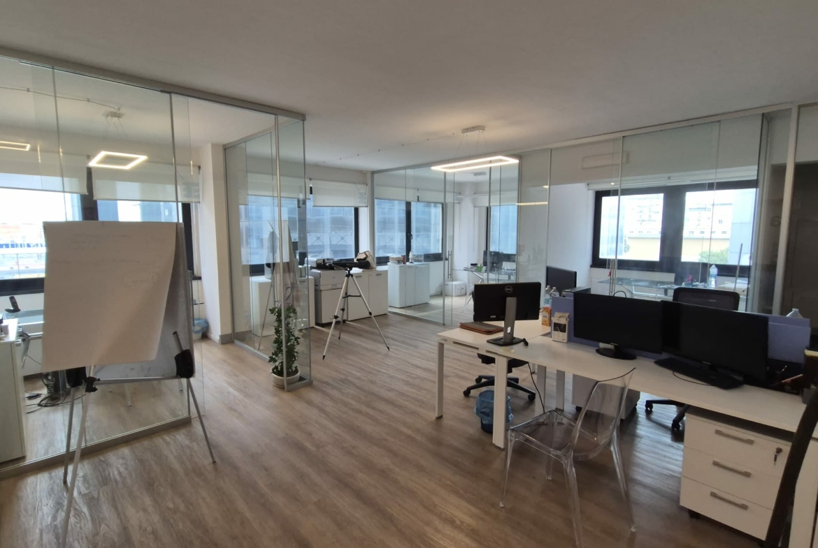 L’ufficio, in ottime condizioni, posto al 2° piano, dispone di ingresso, 1 vano open space, 3 vani, ripostiglio e wc.